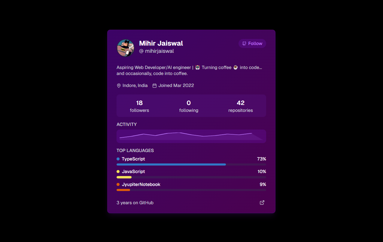 Hey there! I am Mihir Jaiswal I'm a digital craftsman who turns wild ideas into perfect realities. When I'm not busy debugging at 3 AM, you'll find me obsessing over the perfect border-radius and wondering if that button needs to be 2px to the left.